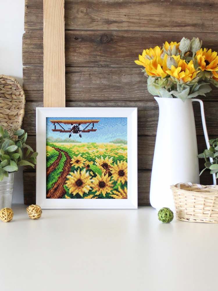 Алмазная мозаика без подрамника 20х20см МС-050 Море подсолнухов.Стразы