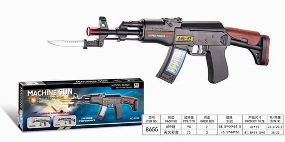 Размер автомата с примкнутым штык-ножом 41 см.Работает от 3-х батареек "АА" (не входят в комплект).
