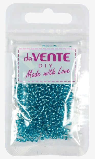Бисер круглый металлизированный 'deVENTE.' стеклянный, 2 мм, 10 г, в пластиковом пакете с блистерным подвесом, голубой