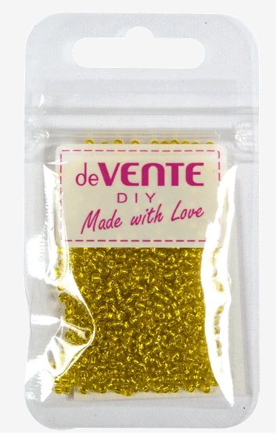 Бисер круглый металлизированный 'deVENTE.' стеклянный, 2 мм, 10 г, в пластиковом пакете с блистерным подвесом, желтый