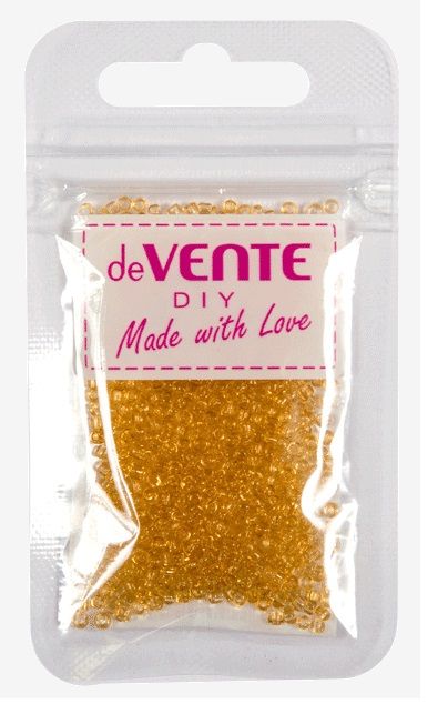 Бисер круглый прозрачный 'deVENTE.' стеклянный, 2 мм, 10 г, в пластиковом пакете с блистерным подвесом, золотистый