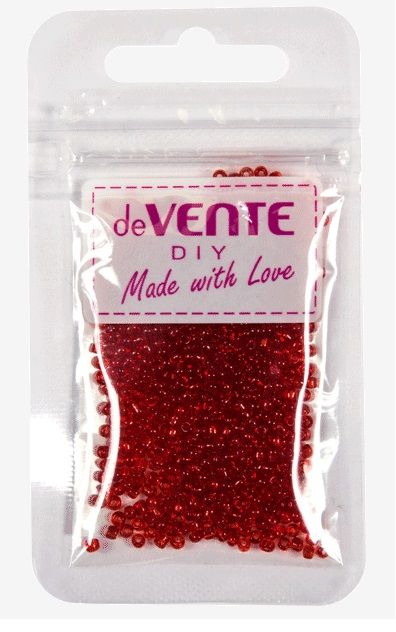 Бисер круглый прозрачный 'deVENTE.' стеклянный, 2 мм, 10 г, в пластиковом пакете с блистерным подвесом, красный