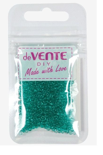 Бисер круглый прозрачный 'deVENTE.' стеклянный, 2 мм, 10 г, в пластиковом пакете с блистерным подвесом, изумрудный