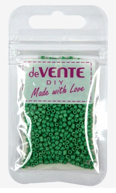 Бисер круглый непрозрачный 'deVENTE.' стеклянный, матовый, 2 мм, 10 г, в пластиковом пакете с блистерным подвесом, изумрудный