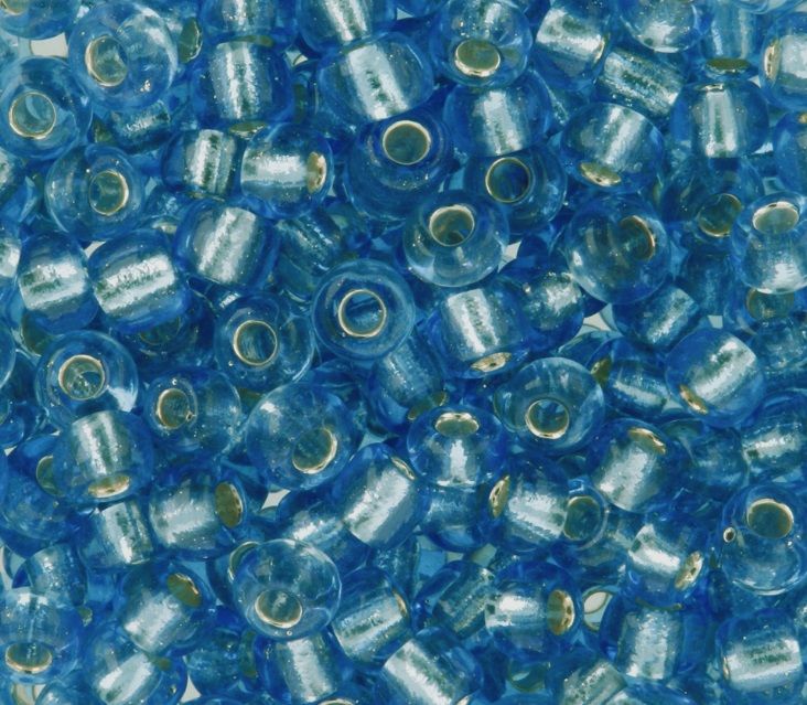 Бисер круглый, прозрачный, отверстие с серебренным покрытием, круглой формы.