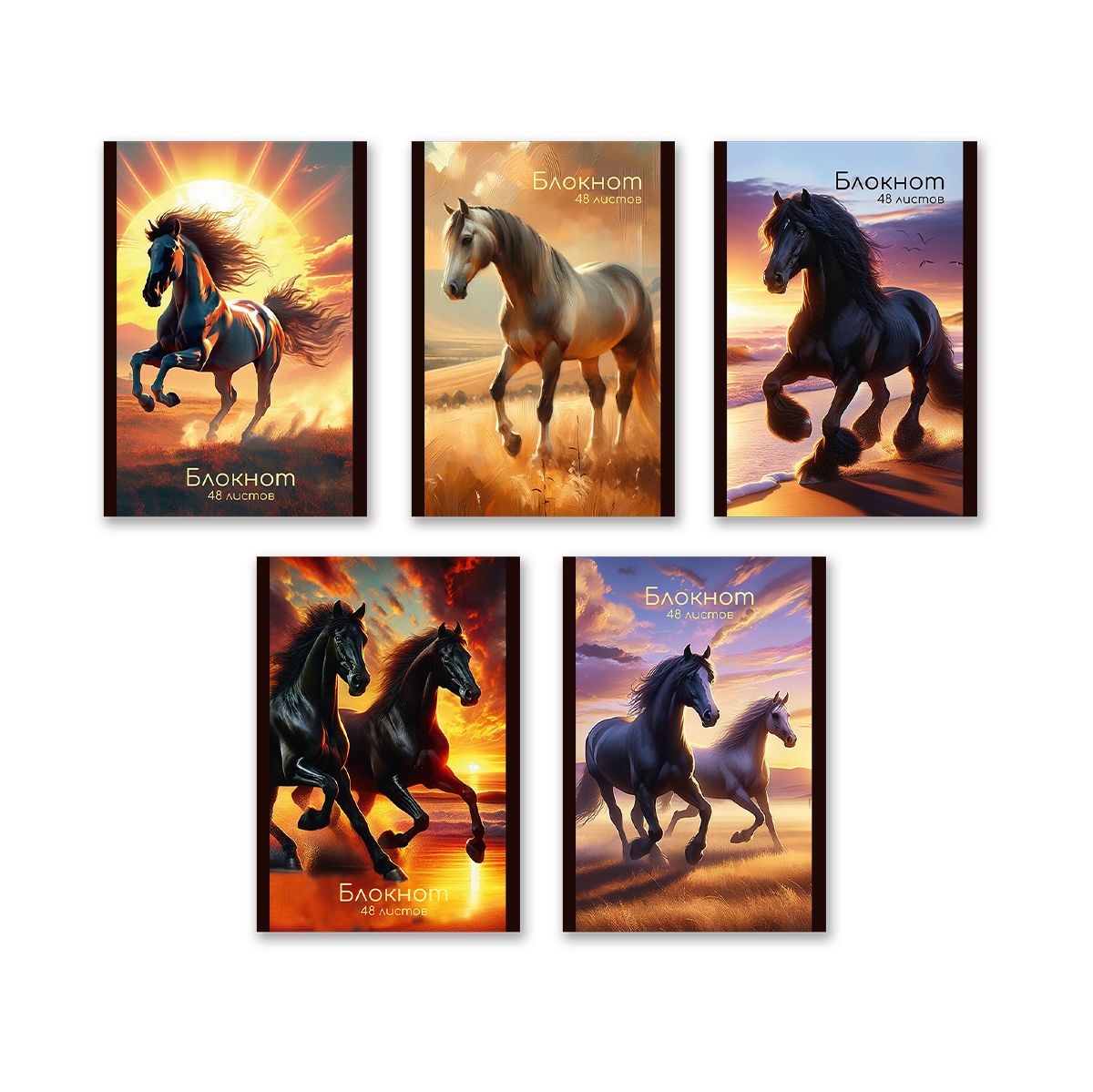 Блокноты упакованы в термоусадочную пленку по 10 штук (ассорти, 5 дизайнов по 2 шт).