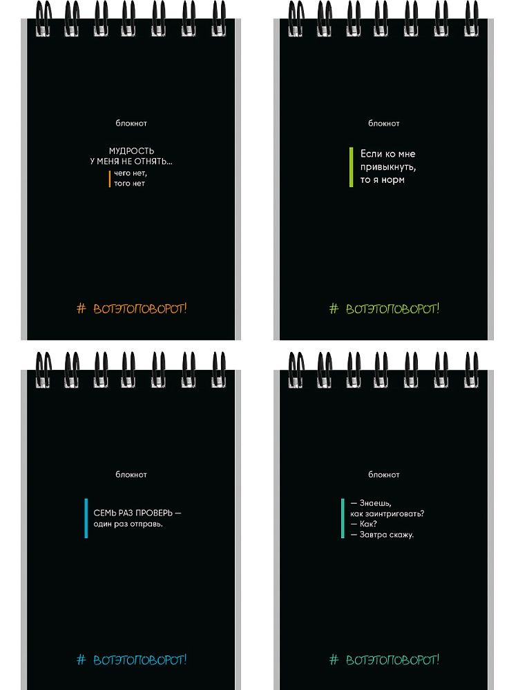 Блокнот А7 гребень 40л. Б40-9325 ФРАЗЫ НА ЧЁРНОМ