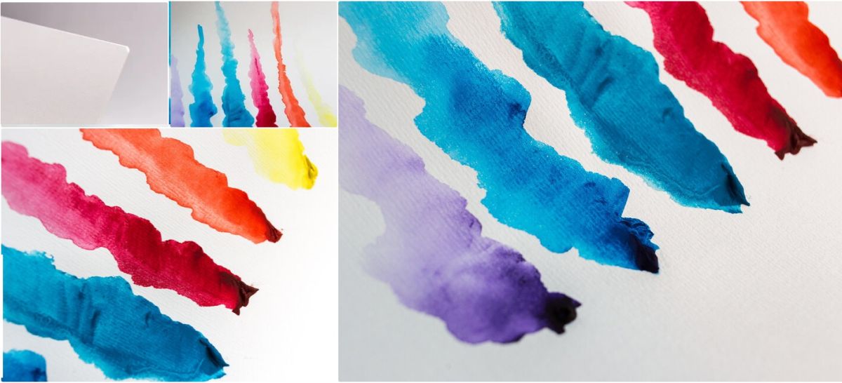 Профессиональная бумага для акварели с мелким зерном из 100% альфа целлюлозы. Из бумаги удален лигнин (woodpulp paper), за счет чего бумага не стареет, не желтеет и сохраняет рисунок на долгие годы. Обеспечивает равномерную акварельную заливку, впитывает воду, но при этом слабо деформируется, стойка к вымыванию. Не съедает цвет, оставляя яркие цвета неизменными. Без кислот.