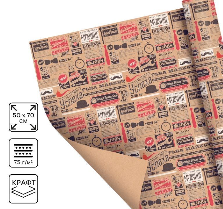 Бумага упаковочная крафтовая 50*70см «Газетные вырезки» 2791548