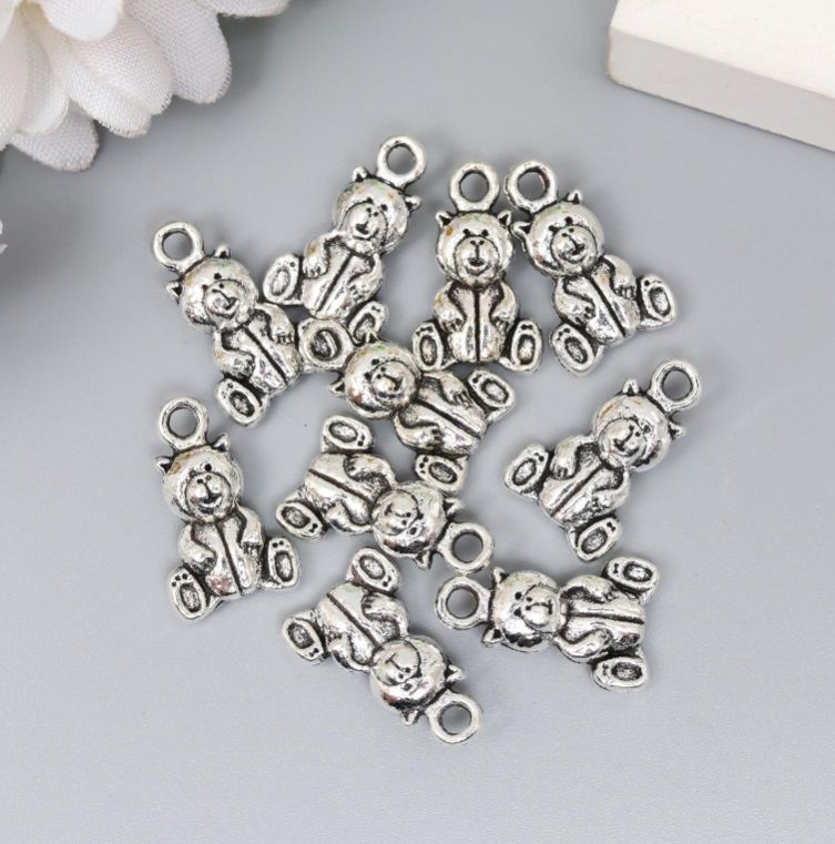 Декор металл «Медвежонок» серебро 1,6х1 см