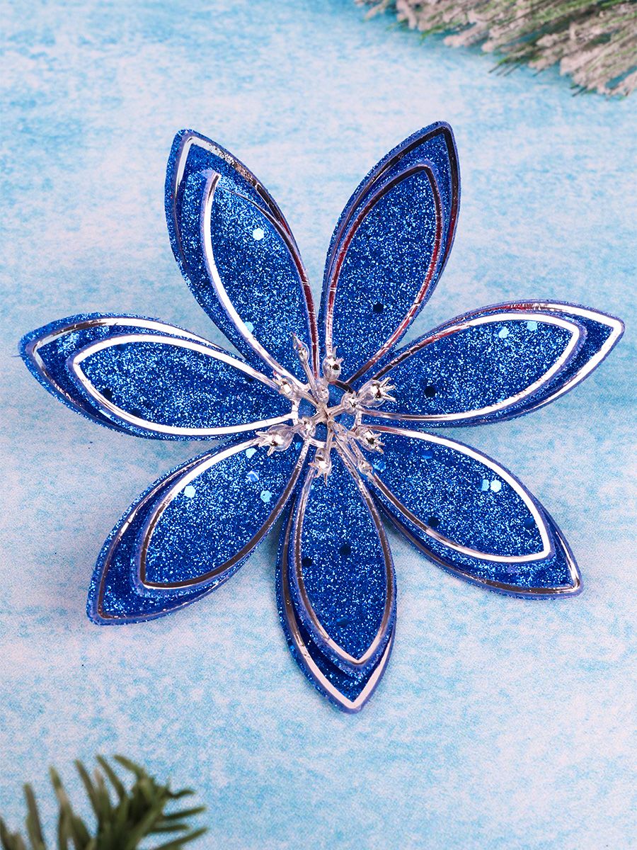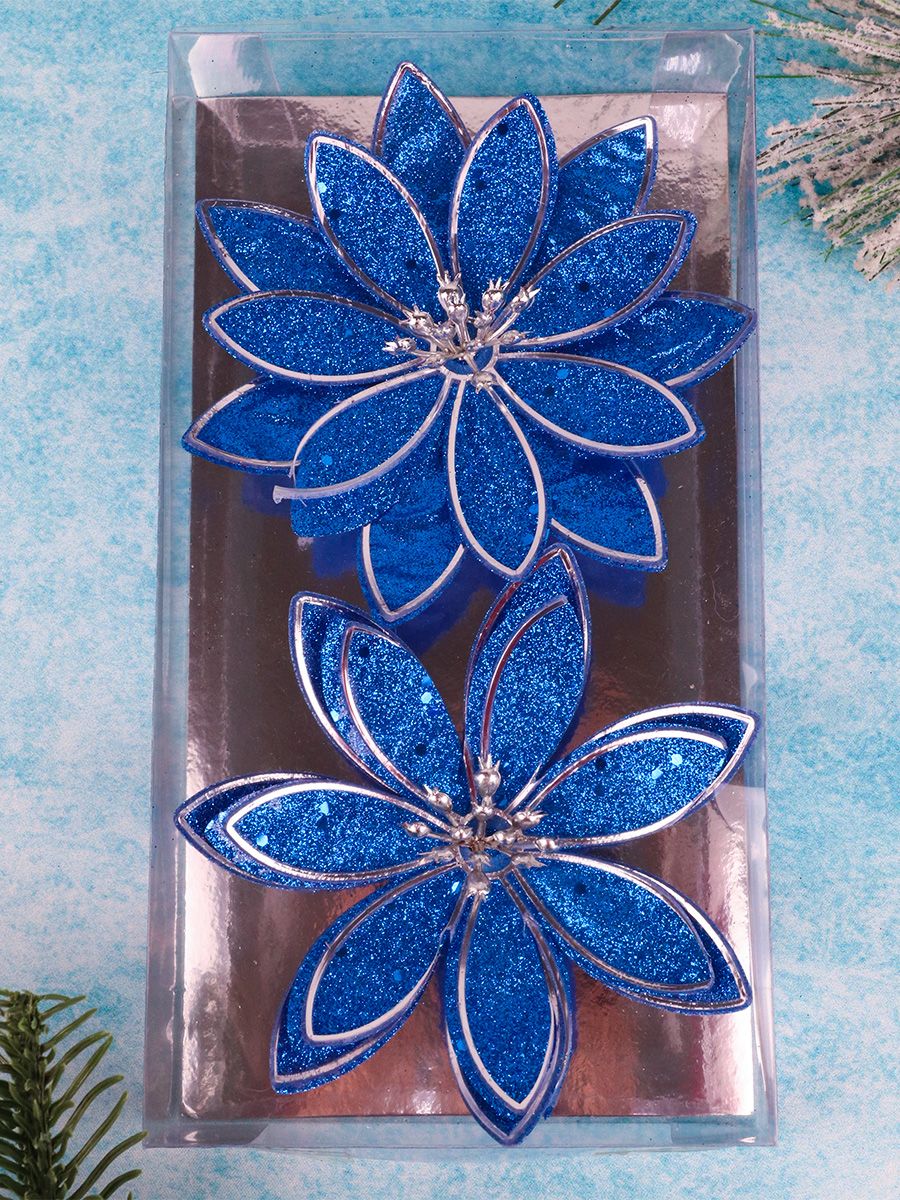 Набор из 2 пластиковых цветов поможет дополнить новогодний декор! Он прослужит вам долгие годы, т.к. изготовлен из качественного сырья. Такими цветками можно украсить елку, венок или комозицию. Размер: 12,5 см. Цвет: синий.