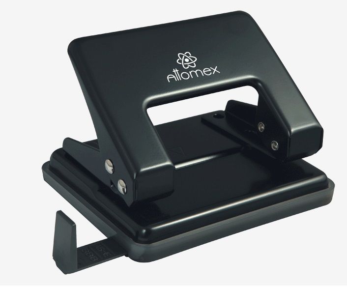 Дырокол 'Attomex' (20 листов) металлический, с линейкой, в картонной коробке, черный