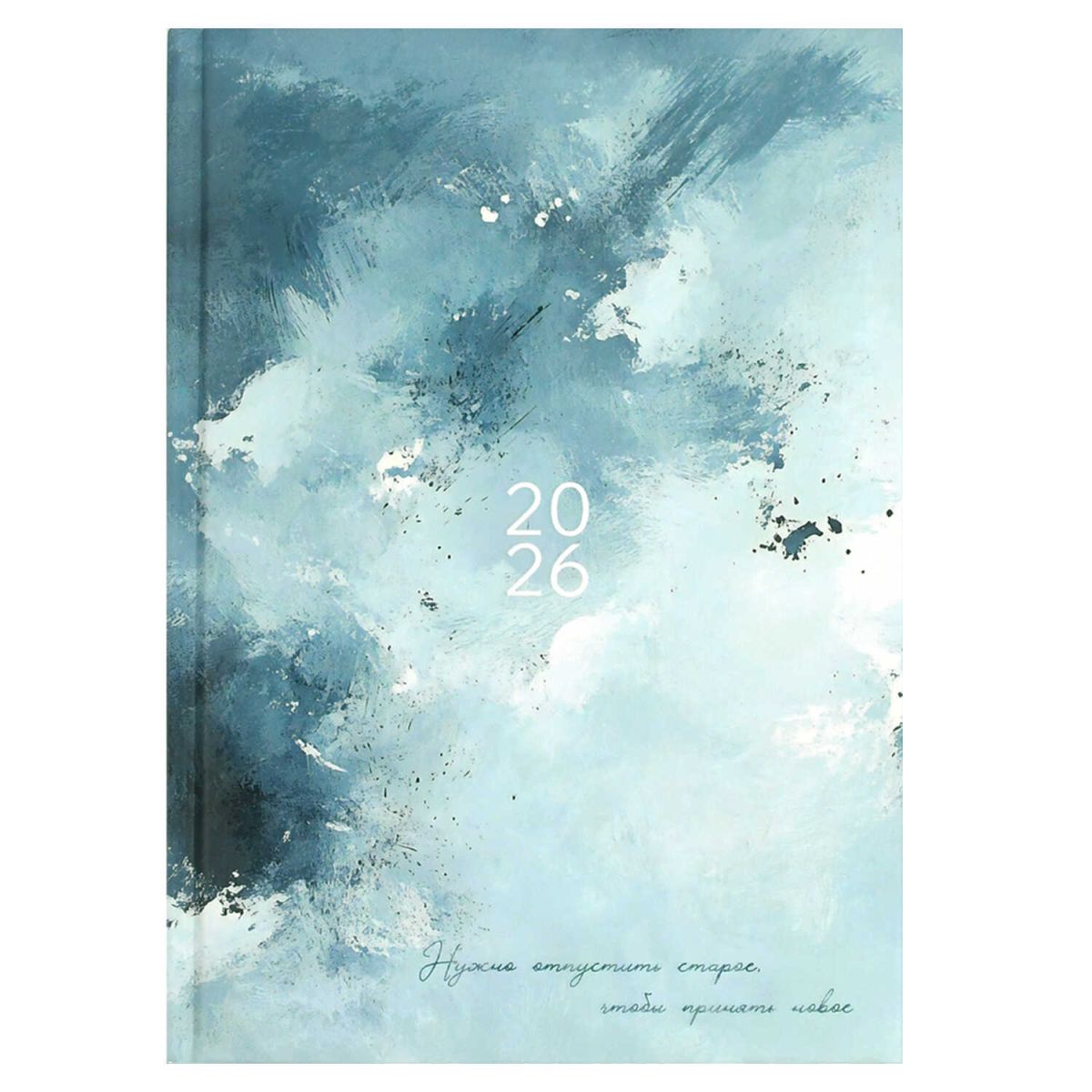 Ежедневник датированный 2026 арт. 71540 ГОЛУБАЯ АБСТРАКЦИЯ / А5, 145х205 мм, 160 л., твёрдый переплёт 7БЦ, полноцветная печать, выборочный  УФ-лак, матовая ламинация. Блок - белый офсет, 65 г/м², печать в одну краску, датированный,