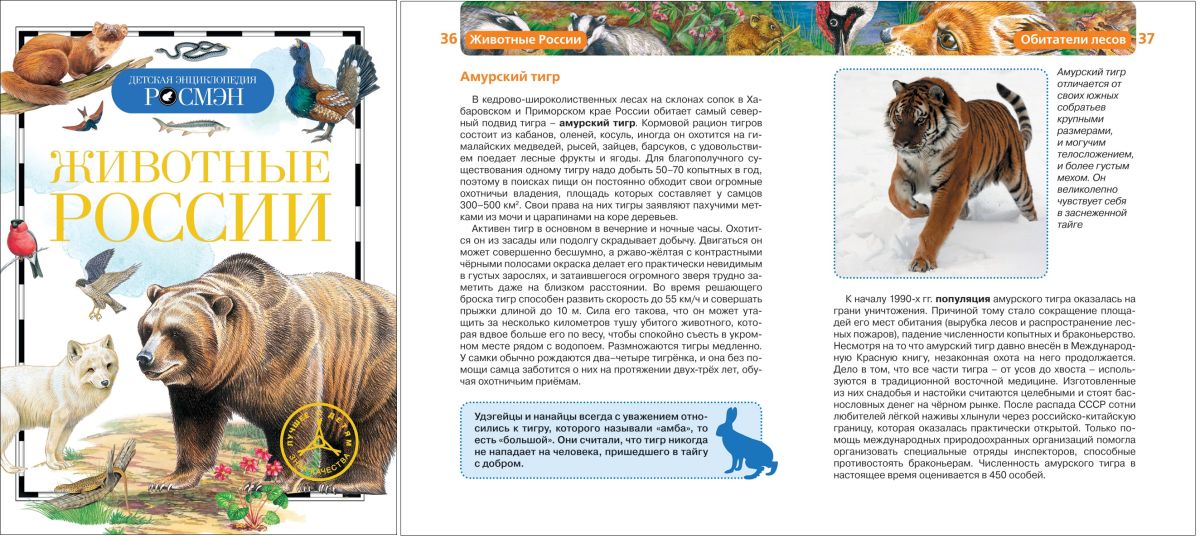 Книга о животных России выходит в серии 'Детская энциклопедия РОСМЭН'. Содержательный текст и множество иллюстраций обеспечивают серии, представленной уже более чем 40 изданиями, устойчивую популярность. Благодаря уникальному соотношению ценакачество серия - лидер продаж детской научно-популярной литературы.