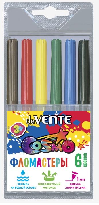 Фломастеры 'deVENTE. Cosmo' 06 цветов с вентилируемым колпачком, в пластиковом блистере