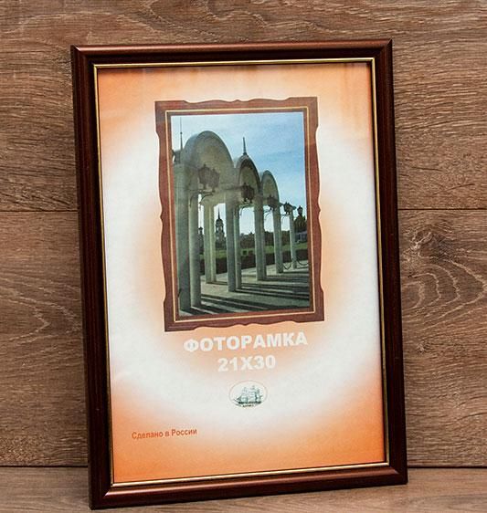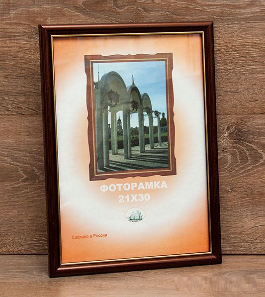 Цвет коричневый с золотой полосой внутри, вставка стекло, ширина багета 15мм