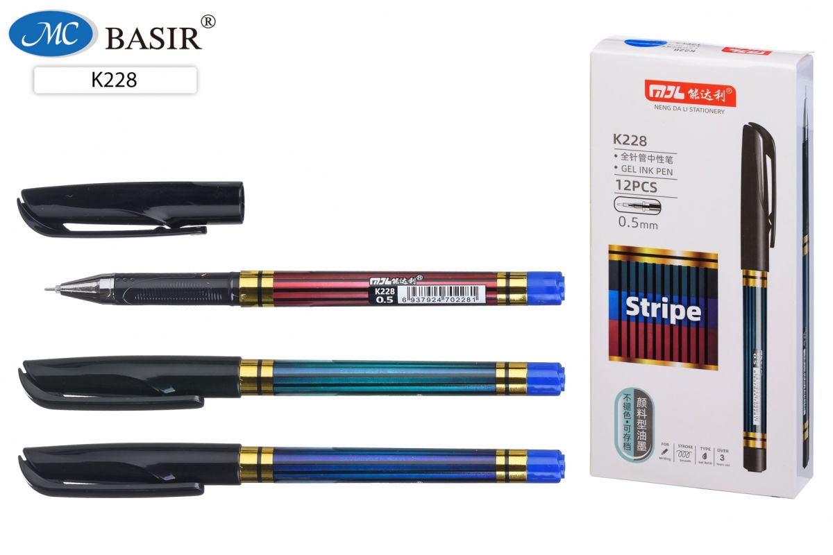 Гелевая ручка черная игол. након. 0,5мм K-228 «Stripe»