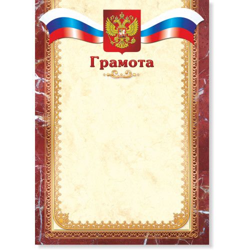 Грамота формата А4 (210×297 мм), материал: мелованная матовая бумага плотностью 157 г/кв.м. Упакованы по 20 штук одного вида