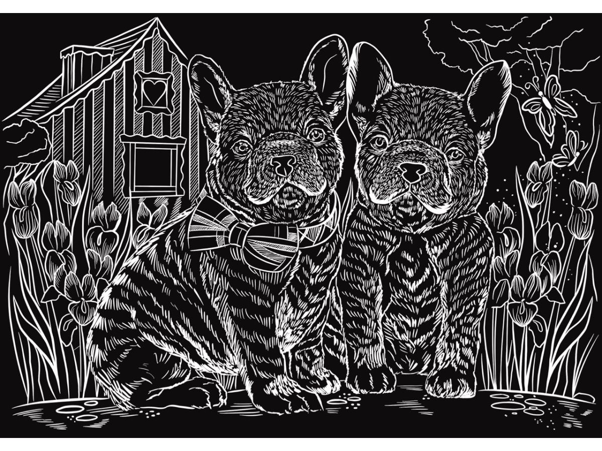 Гравюра А4 Золото. Собачий дуэт Г-5901