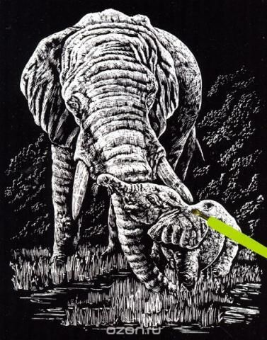Гравюра «Слон и слоненок» Royal Langnickel 20,3*25,4см серебро SILF22