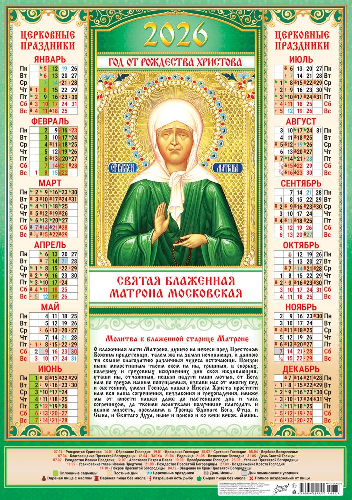 Календарь А2 2026 Иконы Матрона Московская ПО-26-275