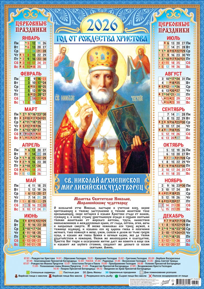 Календарь А2 2026 Иконы Николай Чудотворец ПО-26-278