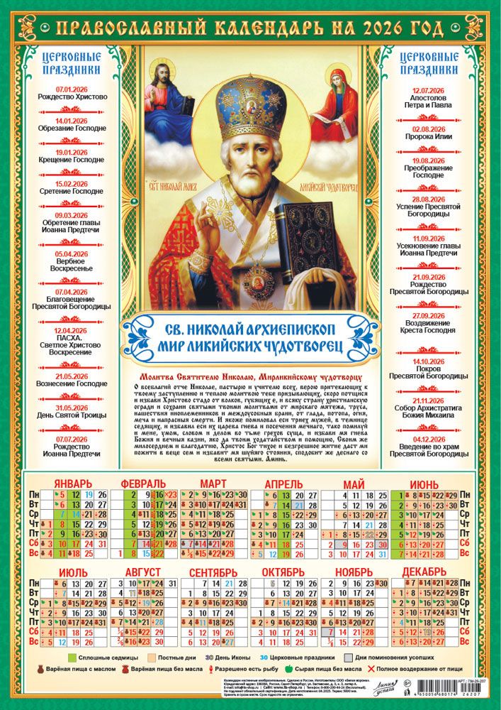 Календарь А3 2026 Иконы Николай Чудотворец ПМ-26-207