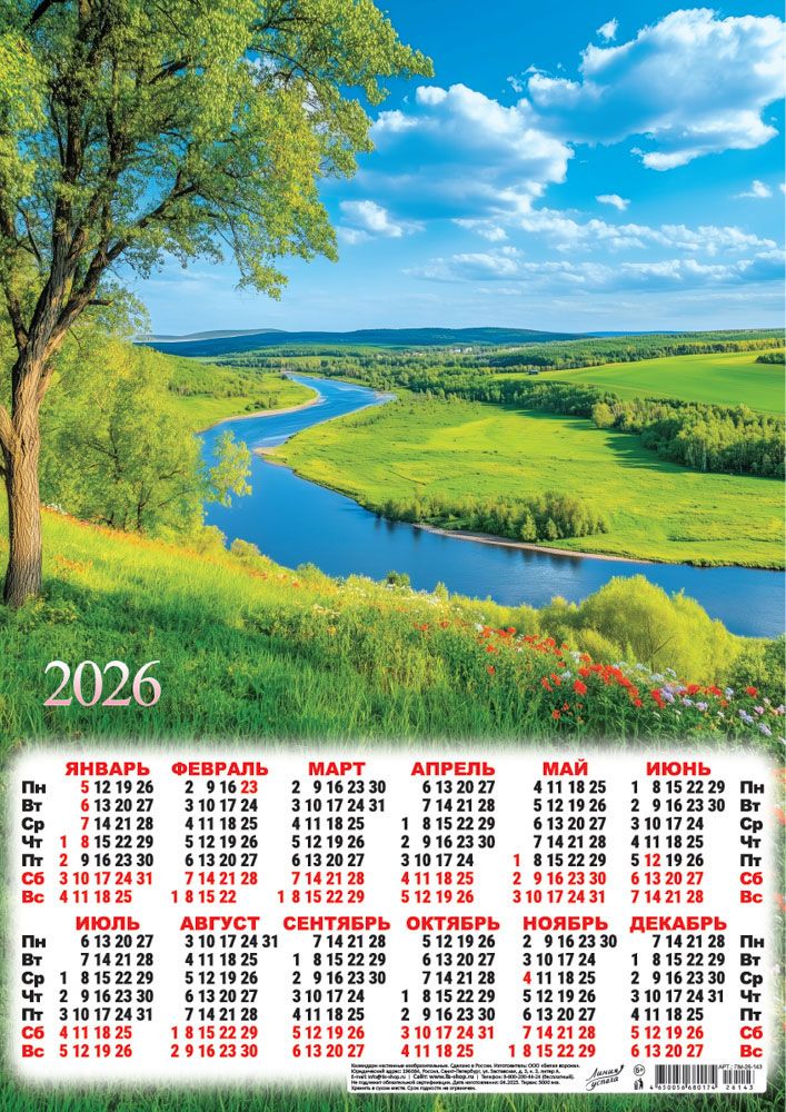Календарь А3 2026 Природа ПМ-26-143 Зелёные холмы