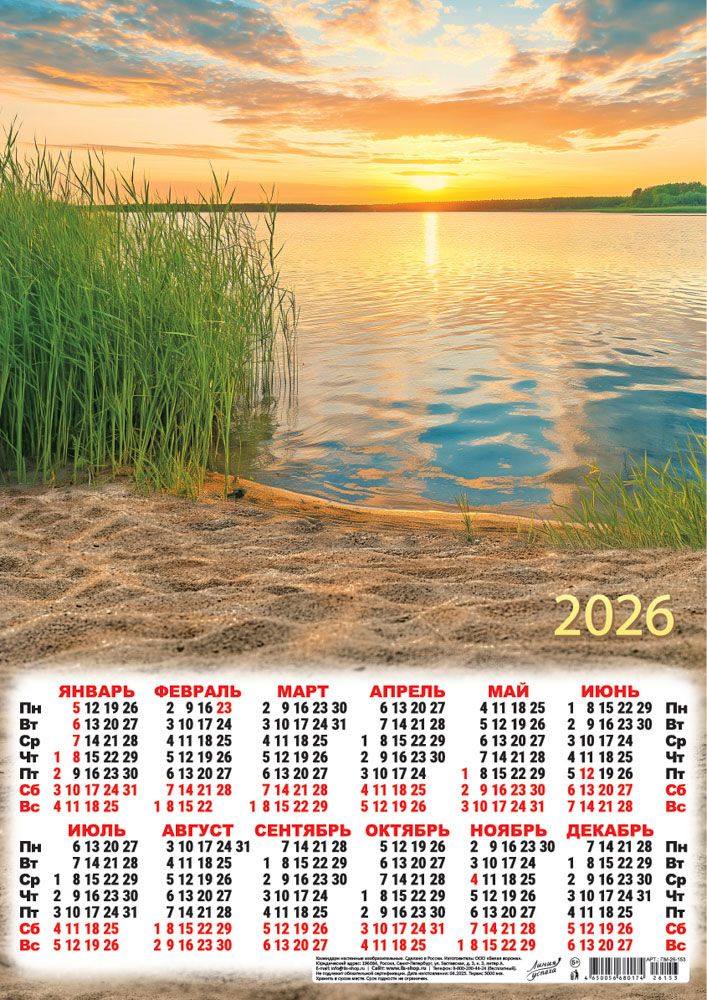Календарь А3 2026 Природа ПМ-26-153 Закат на озере