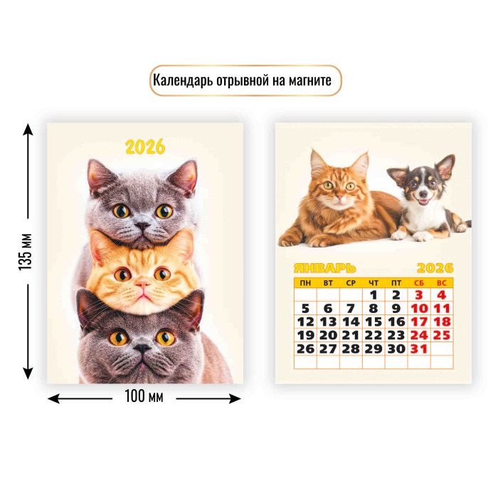 Календарь на магните отрывной 2026 100х135 9488 Котики