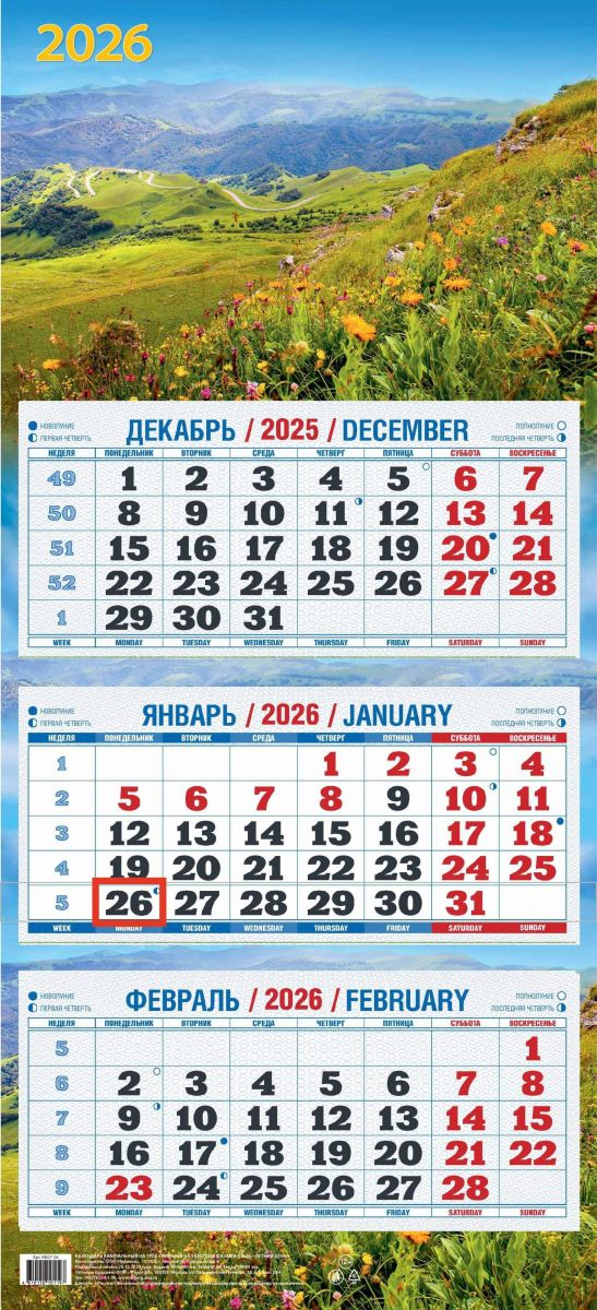 Календарь трехсекц. 2026 310*680 КБ07‐26 Летний день