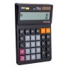 Настольный полноразмерный калькулятор Deli в черном корпусе популярен как среди бухгалтеров, так и среди продавцов, банковских и офисных сотрудников. Изготовлен из противоударного пластика и отличается большим дисплеем с увеличенными символами для комфортной работы. Позволяет корректировать введенное число, задавать настройки округления и количества знаков после запятой. Оптимальный набор функций поможет автоматизировать расчеты: вычисление процента, кнопка '00', функция смены знака, функция итогового суммирования. Двойное питание (солнечная батарея + батарея) и автоматическое отключение через 5 - 12 минут бездействия увеличивают срок службы. Разрядность дисплея: 12. Размер: 126х179х28.5мм.  Наличие кнопки 'Коррекция последнего введенного значения' - да.