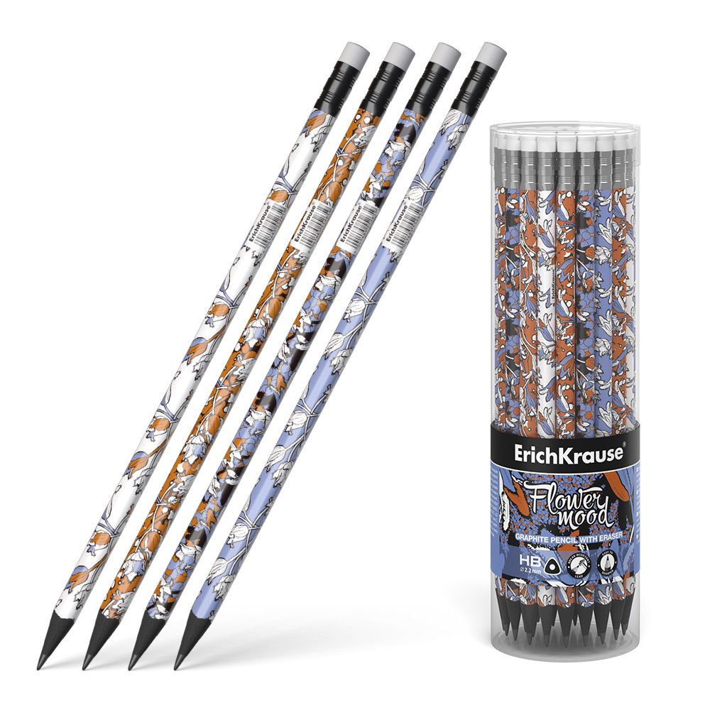 Карандаш дерев. с ластиком НВ ErichKrause Tulips 3-хгран.