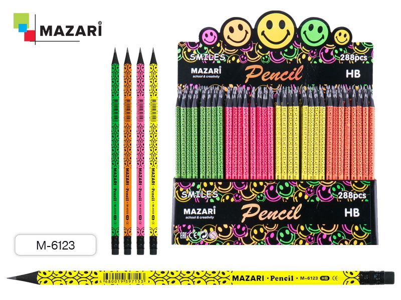 Карандаш дерев. с ластиком НВ М-6123 черное дерево SMILES