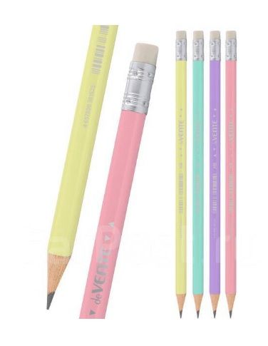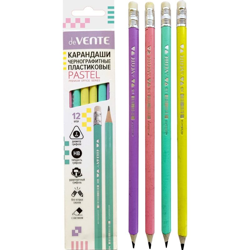 Карандаш чернографитный "deVENTE.Pastel" HB, диаметр грифеля 2 мм, трёхгранный, с ластиком, заточенный, пластиковый, цвет корпуса пастельное ассорти, индивидуальная маркировка, в картонной коробке