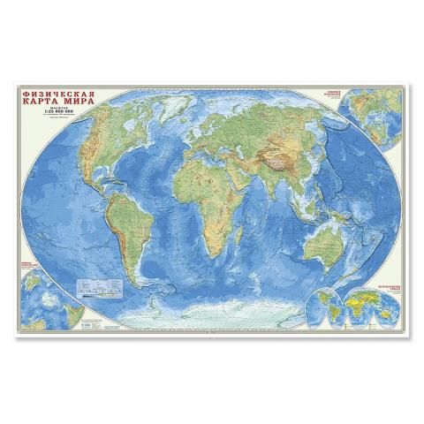 Карта Мир физическая М-б 1:25 млн. 124х80 настенная