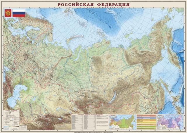 Карта Мир физическая М-б 1:21,5 млн. 107х157 ЛАМ. настенная
