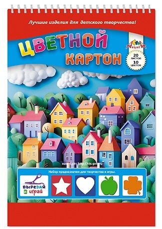 Цветной картон 20 листов, 10 цветов ТМ Апплика. гребне. Листы из немелованного картона имеют ровные насыщенные цвета: красный, желтый, синий, зеленый, малиновый, оранжевый, коричневый, черный, белый, фиолетовый.