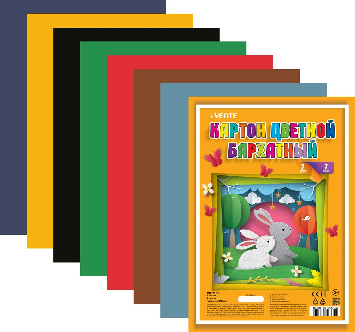 Картон цветной бархат. А4 7л. 7цв. «deVENTE» 8114905