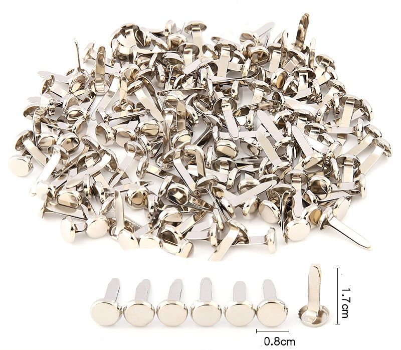 Брадсы металлические для скрапбукинга - декоративный элемент в скрапбукинге по форме напоминающий гвоздик. Брадс имеет раздвоенную гибкую ножку, которая продевается сквозь отверстие в бумаге, ленточке, картоне и т.д. и крепится путем отгибания двух частей ножки в разные стороны. Шляпки у брадса могут быть самыми разнообразными по форме и размеру. Брадсы могут быть использованы как в качестве крепления для декоративных элементов (бантики, ярлычки, цветочки и т.д.), так и выступать самостоятельным элементом для декорирования в скрапбукинге.