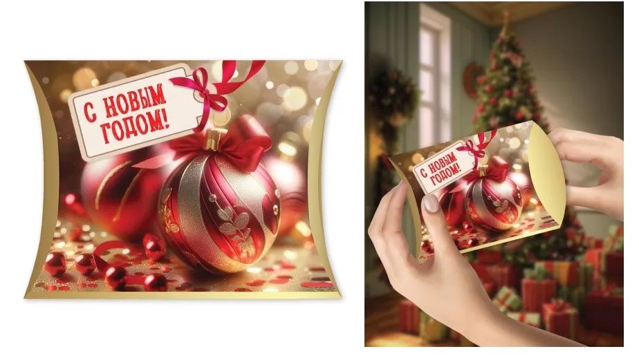 Коробочка-подушка для упаковки ювелирных изделий или небольших подарков. Изготовлена из плотного картона, который хорошо держит форму. Размер собранного изделия - 100х135 мм. Печать - односторонняя, сверху на картонную основу нанесен четкий принт, а внутри коробочка - белая. В упаковке 10 штук.