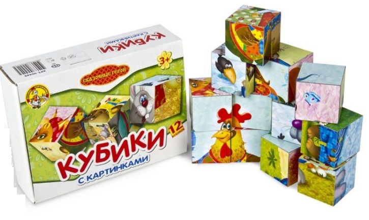 Картинки на пластмассовых кубиках «Сказочные герои» нанесены методом прямой печати, что делает изображения более яркими и долговечными.
