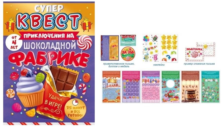 Игра подойдет для детей от 4 лет. Тематические задания, загадки и головоломки нужно решать последовательно, чтобы в конце оказаться у заветного подарка. Яркие иллюстрации, понятная инструкция внутри. Веселый и развивающий досуг и отличное решение для праздника!