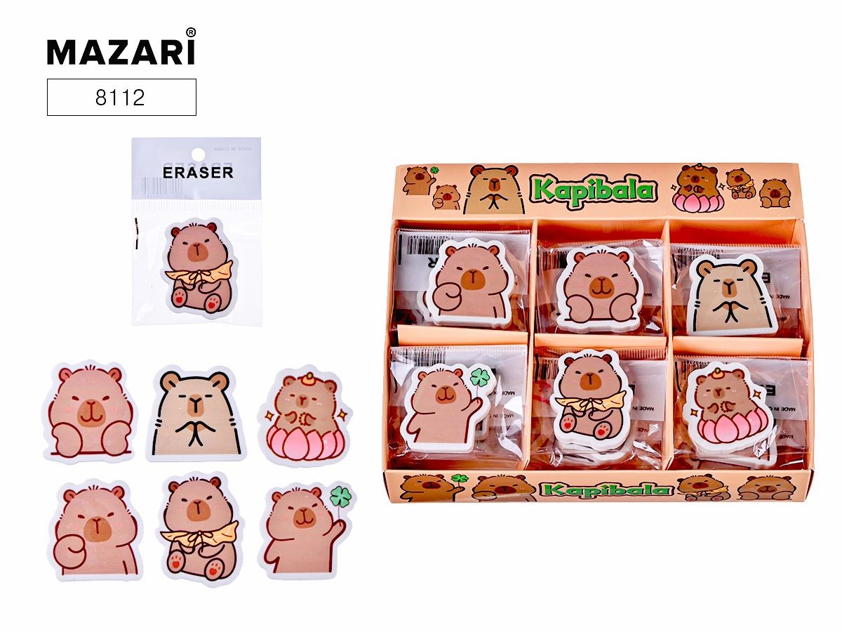 Ластик КАПИБАРА, термопластичная резина, 3.5*4 см, фигурный, 6 дизайнов, ОПП- упаковка / картонный дисплей