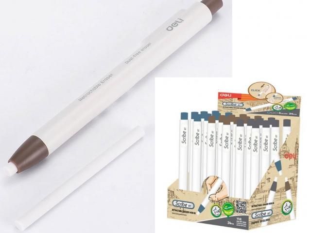 Ластик-карандаш механ. Deli EH01800 Scribe RT белый карт. дисплей