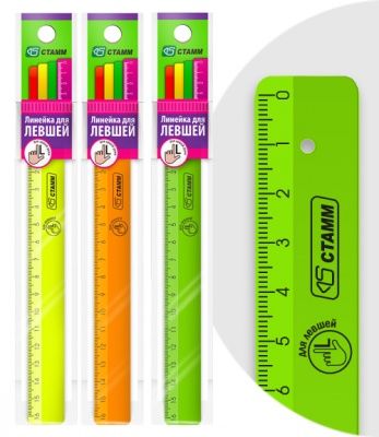 Линейка пласт. 16см ЛН06 д/левшей неон 4цв.