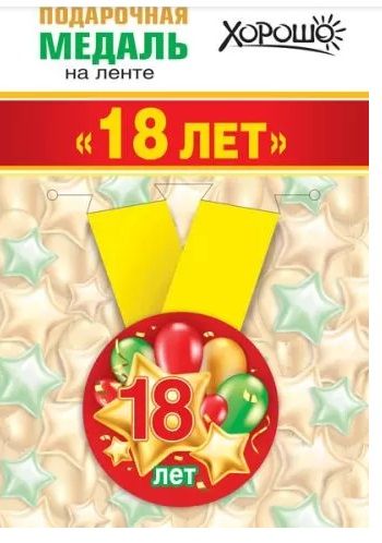 Медаль металлическая малая «Мне 18 лет» 15.11.01358 d=56 мм
