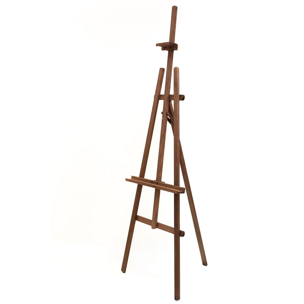 Мольберт 'Лира' классической конструкции, выполнен из сосны высокого качества, покрыт специальным защитным составом, который придает мольберту благородный 'винтажный' вид. Максимальная высота холста 135 см. Ширина и глубина основания 70 см. Высота 180 см.