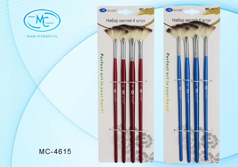 Набор кистей 4шт. нейлон МС-4615 плоские, веерообразные