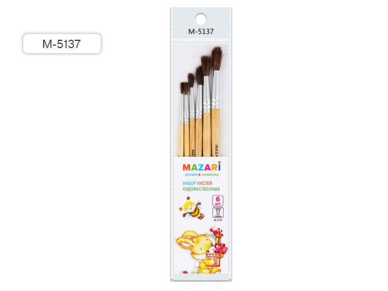 Набор кистей художественных, 6шт (№ 1, 2, 3, 4, 5, 6), из волоса пони, кисть круглая, обойма обжимная, ручка деревянная лакированная, ОПП- упаковка